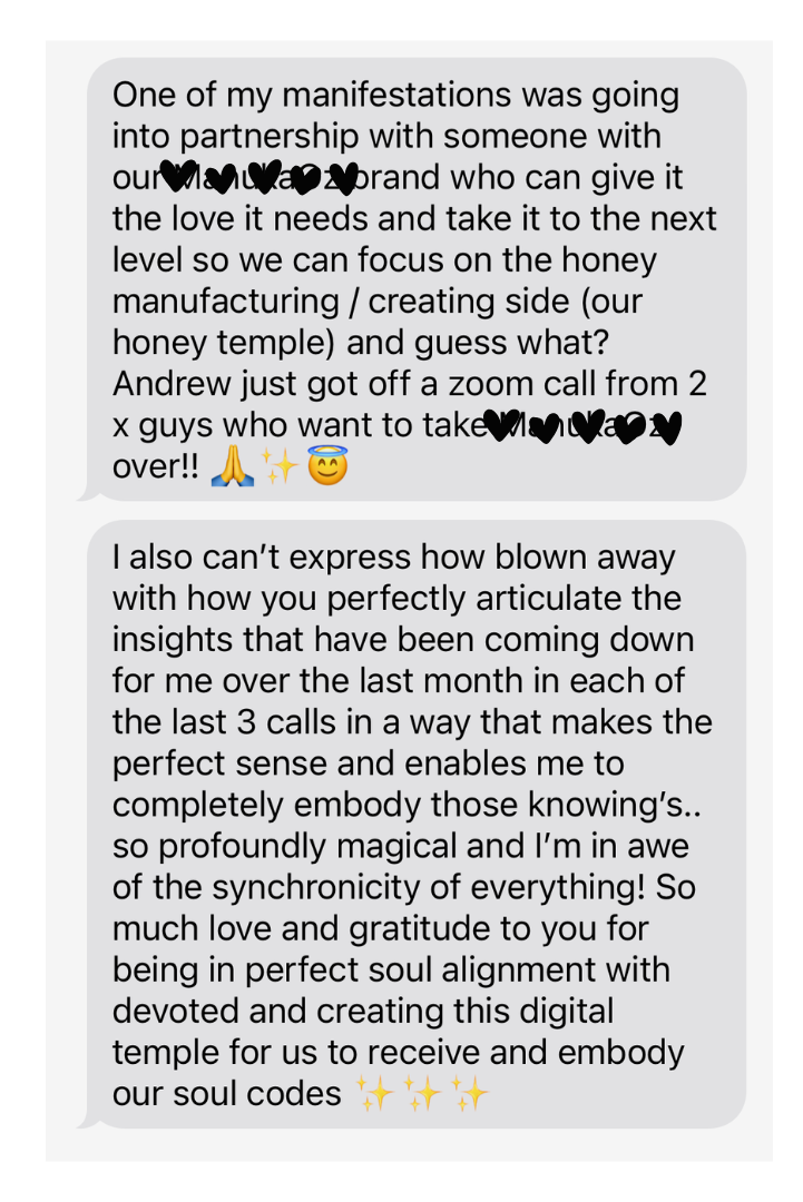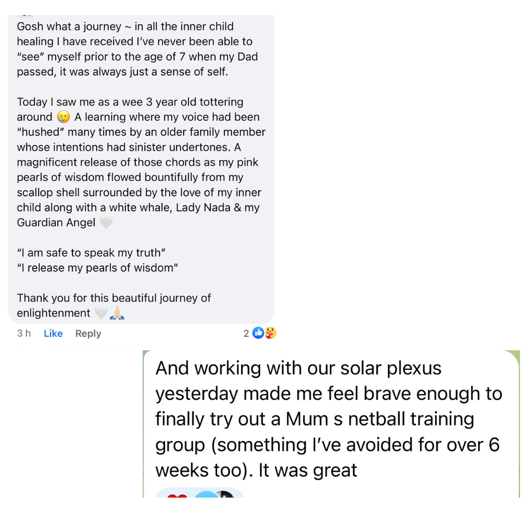 “I am loving the light activations that are coming through the calls. I’m having profound shifts with my intuition, mental clarity, connection to nature, capacity to share on social media, new clients joining my program and lots of new enquiries.”