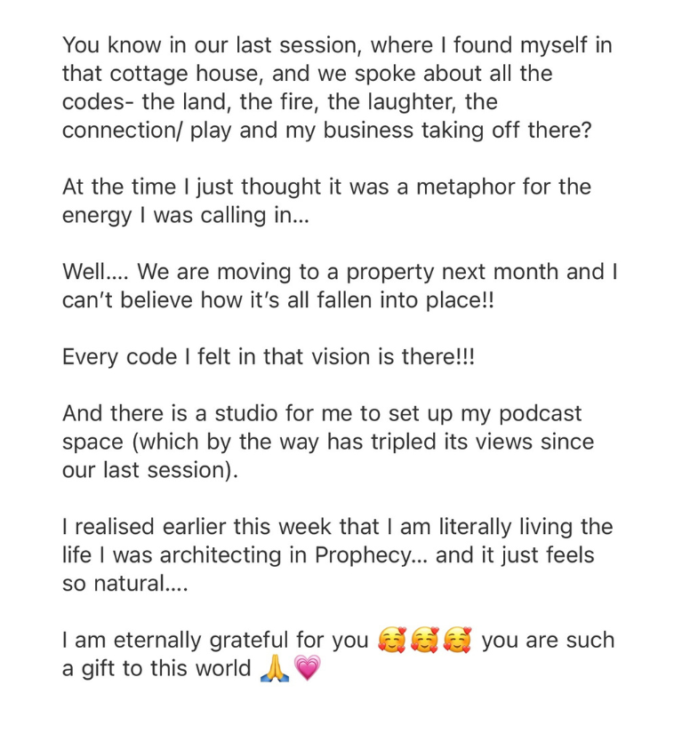 I’m feeling so much lighter and free after our session this week, actually that doesn't even begin to explain it! Lol!